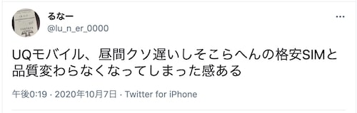 本ページはプロモーションが含まれています。 UQモバイル 通信速度 遅い 口コミ07 2021/3/24 TwitterTwitter Share Share PocketPocket Hatena Hatena LINE コピーする -